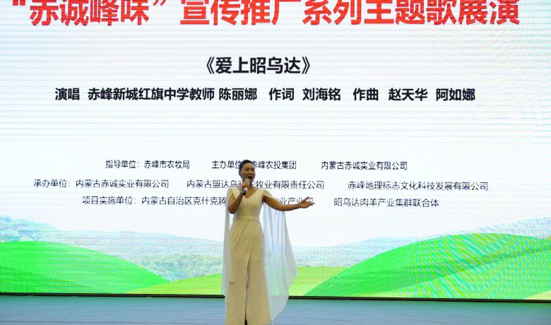 “赤诚峰味”宣传推广系列主题歌环节,内蒙古艺术学院副教授、声乐博士阿如娜,赤峰籍蒙古族著名歌手豪图,赤峰新城红旗中学教师陈丽娜现场展演了“赤诚峰味”宣传推广系列主题歌《爱上昭乌达》、《内蒙古大草原》、《中华龙凤》。
