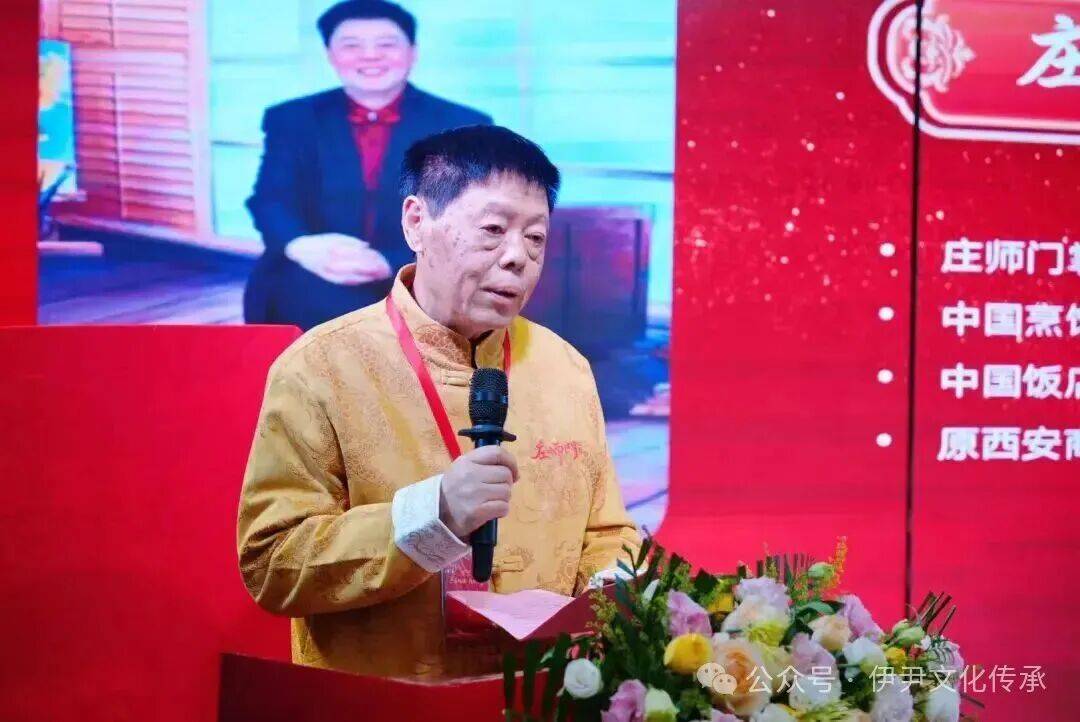 冠名单位海天代表丁明刚发表讲话,庄师门掌门人、中国烹饪大师名人堂尊师、首批资深注册中国烹饪大师庄永全致辞,回顾了庄师门发展历程,阐述了师门振兴陕菜的初心与使命。