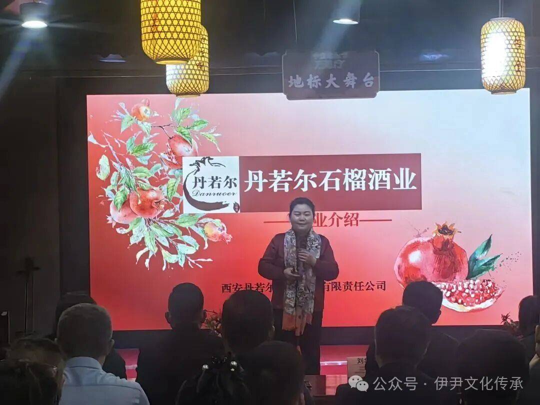 西安临潼丹若尔石榴酒业运营总监、石榴文创园总经理王科峰分享了活动初心,表达了传承石榴文化、推动产业升级的坚定愿景,字里行间满含对家乡风物的深情与期许。 文化赋能是此次活动的核心亮点之一。丹若尔石榴酒业运营部副总经理赵晨羽带来《千年红韵:临潼石榴的文化密码与当代转化》主题分享,带现场嘉宾回溯临潼石榴2000多年的历史渊源——从汉代经古丝绸之路传入长安,到唐代成为皇家贡品,再到如今成为西安的市花象征,每一段历史都承载着深厚的文化底蕴。同时,她还详解了丹若尔如何以现代技艺激活传统风物,让石榴从果实升华为佳酿,实现文化价值与产业价值的双重提升。