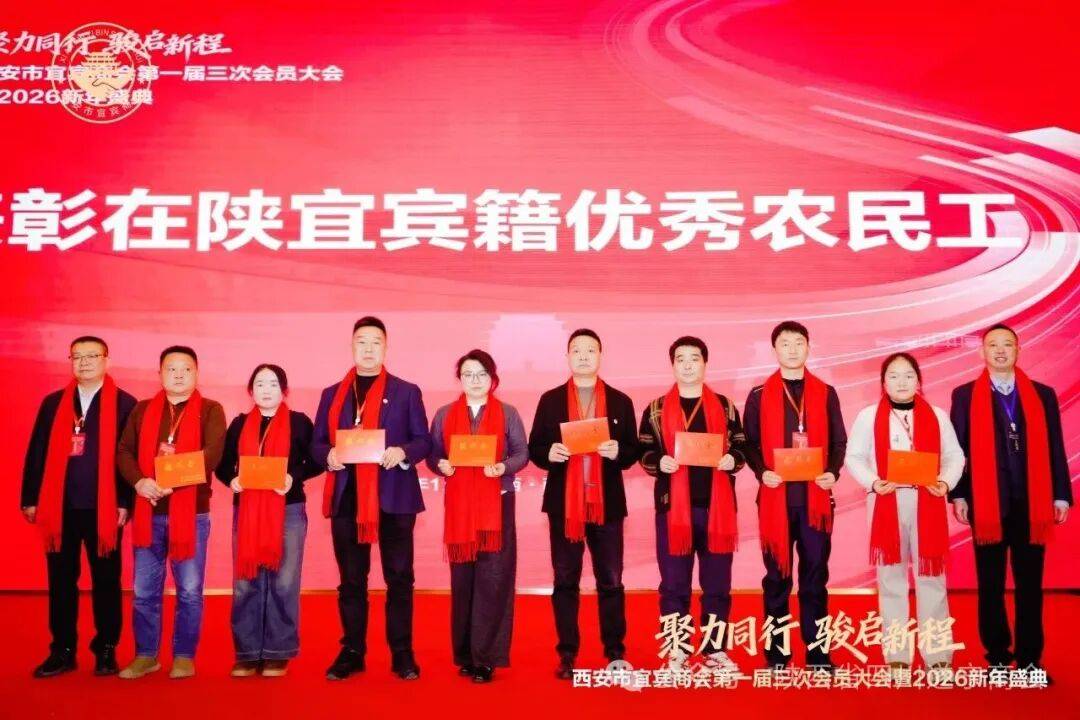 2026年1月25日下午,西安市宜宾商会以“聚力同行,骏启新程”为主题的第一届三次会员大会暨2026新年盛典在铂菲朗酒店隆重举行。我会会长文秉星作为在陕兄弟商会代表出席了盛典。