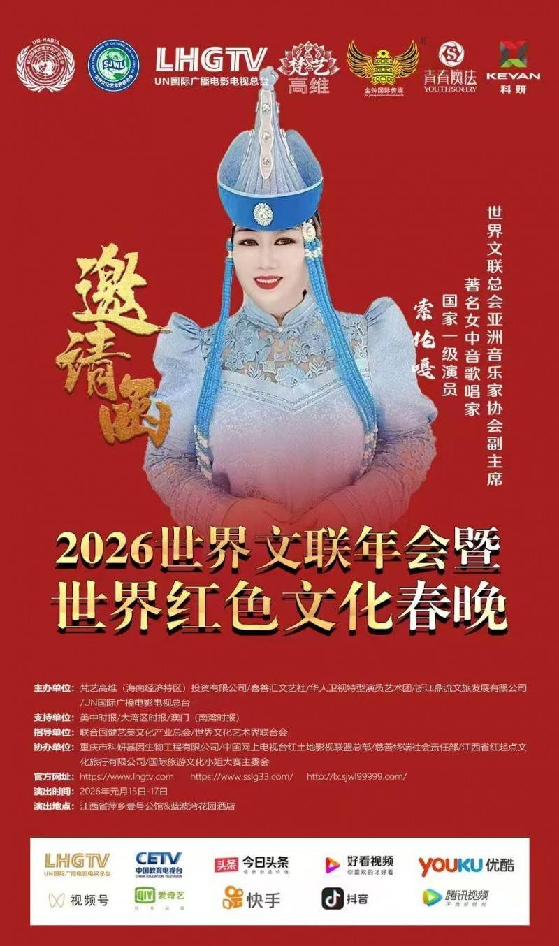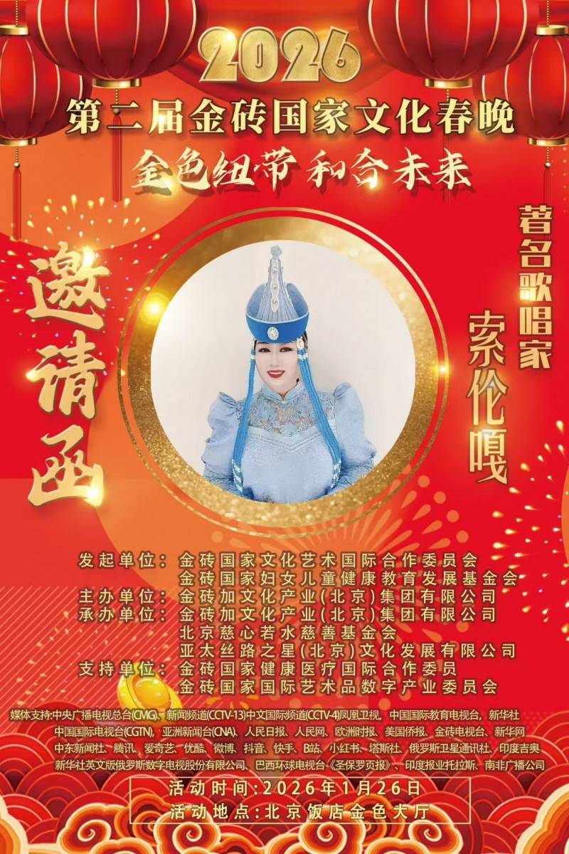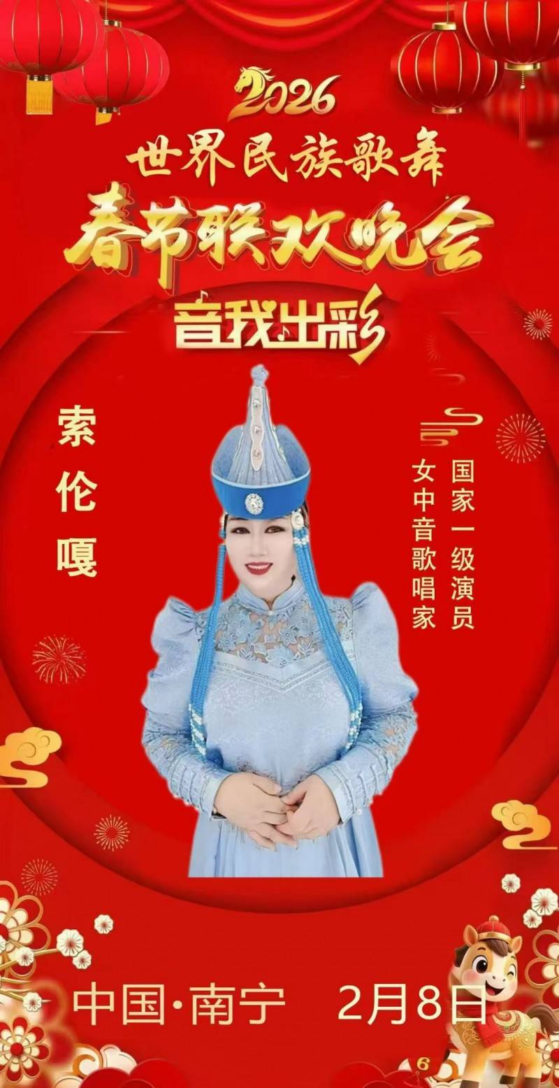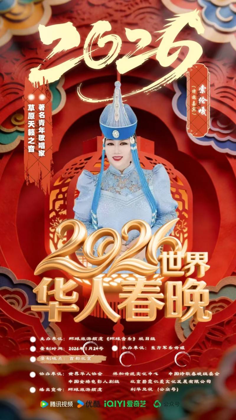 亮相国际春晚舞台并实现多平台、多场次春晚同步播出,标志着索伦嘎的艺术成就与舞台影响力再获国际认可。未来,她将继续以歌声为纽带,致力于中华优秀传统文化的传承与传播,为讲好中国故事、传递中国声音贡献艺术力量。