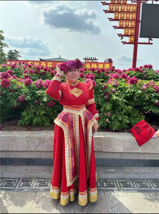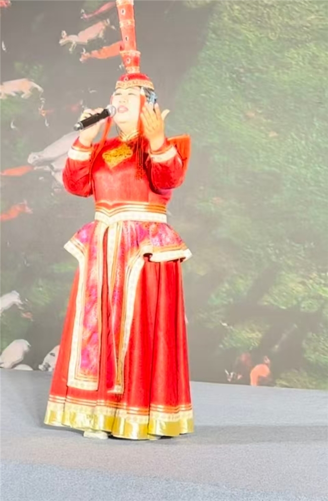 作为本次开幕式特邀演唱嘉宾,索伦嘎盛装登台,凭借其标志性的醇厚女中音嗓音,为现场观众带来精彩演唱。她的歌声低沉圆润、底蕴十足,既饱含草原歌手独有的辽阔深情,又贴合菏泽牡丹花城、好汉故里的人文底蕴,将经典旋律与现场氛围完美融合,每一句演唱都直击人心,赢得台下观众阵阵热烈掌声。